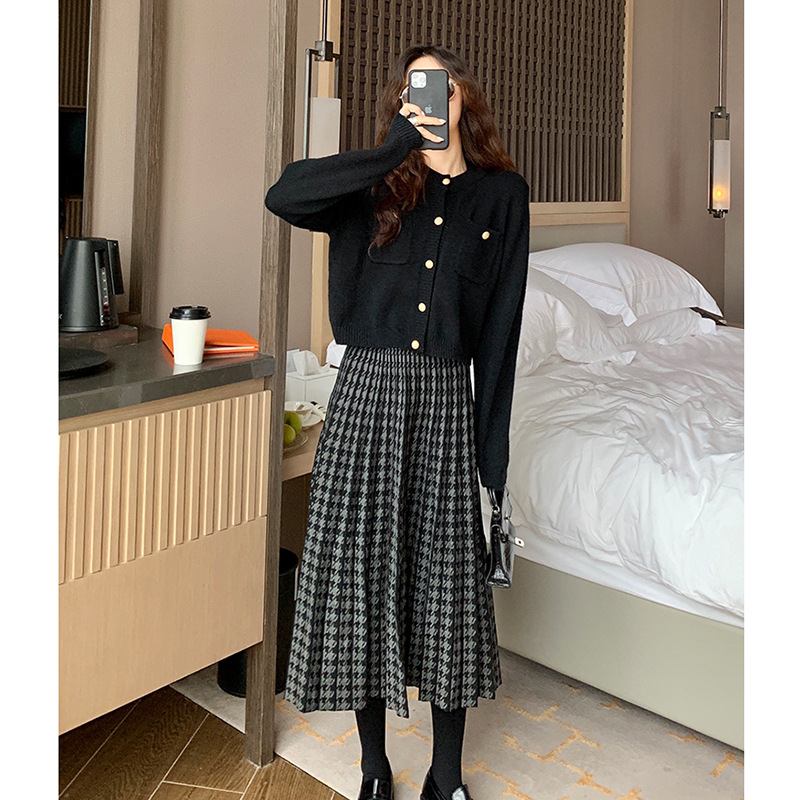 Ruudulliset Hameet Houndstooth Neulotut Korkeavyötäröiset Pitkät