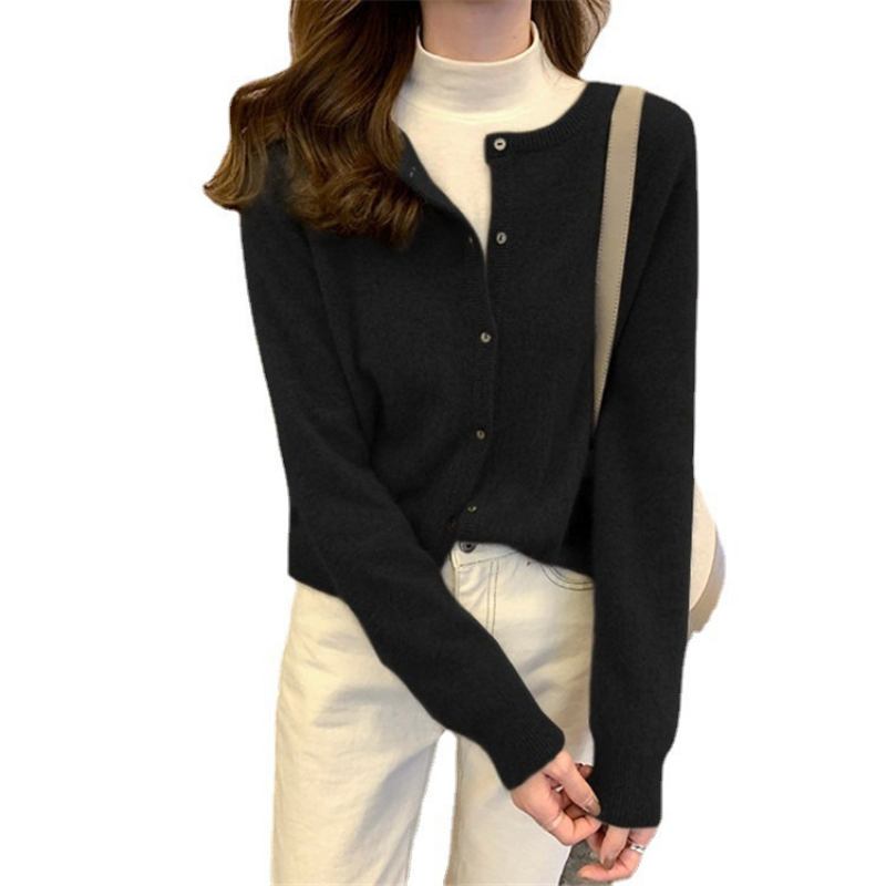 Syksy 2023 Uusi Pyöreäkaulainen Lyhyt Neuletakki Löysä Alaosa Naisten Villatakki