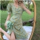 Temperamentti Puhvihihat V-pääntie Kukkainen Mekko Keskipitkät Halkiot
