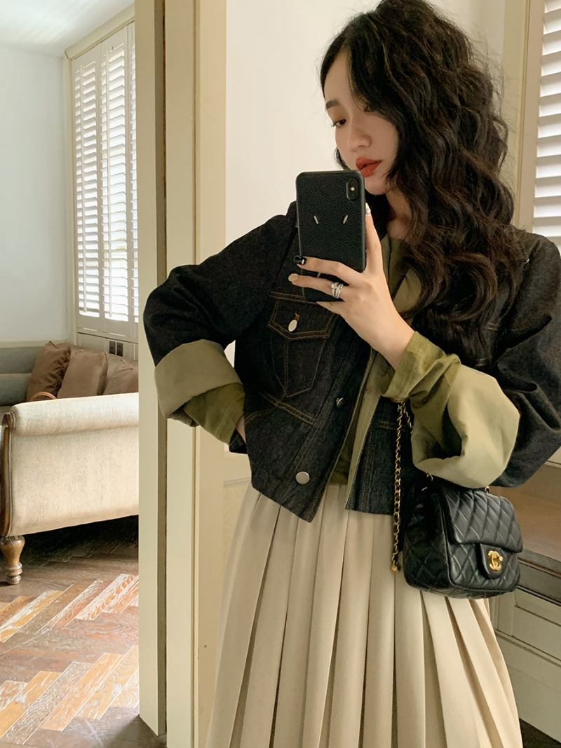 Tilkkutukkainen Leikattu Denim Takki Naisten 2023 Löysä