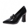 Tummanvihreä Kiiltonahka Litteät Kengät Naisten 2023 Kevät Uusi Muoti Hevosen Teräväkärkinen Mekkokengät Matala Suu Paksu Korko Korkokengät