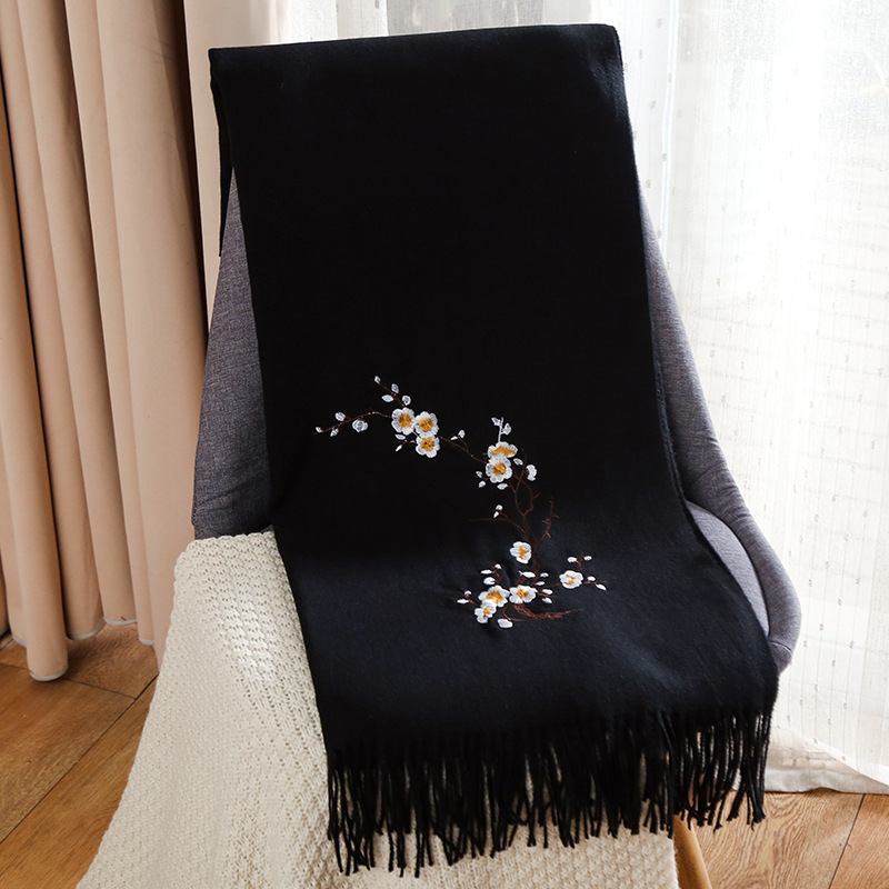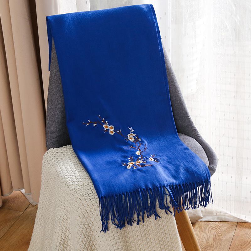 Uusi Yksivärinen Kirjailtu Kashmir Huivi Äiti Tyyli Kirjonta Luumukukka Lahja Lämmin