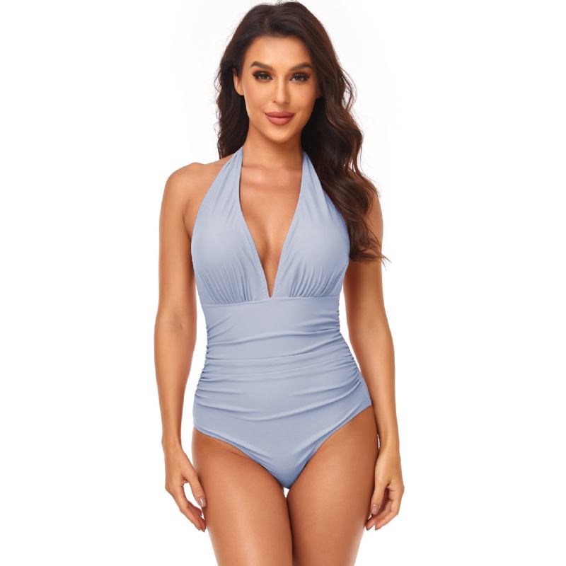 Uusi Yksivärinen Yksiosainen Uimapuku Rypytysriimu Kaula