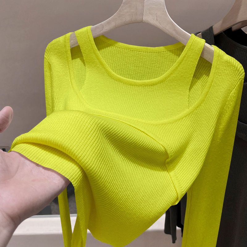 Väärennetty Kaksiosainen Pitkähihainen Neulepusero Naisten 2023 Kevään Ja Syksyn Uusi Yläosa Ohut Osa Ontto Jousipohjainen Pusero