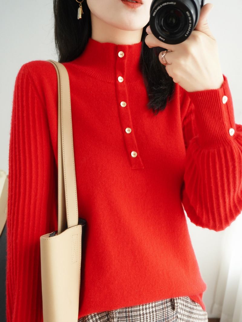 Villa 2023 Kevätkauden Naisten Uusi Lyhyt Napittava Löysä Lyhtyhihainen Yksivärinen Neulottu Pohjapusero